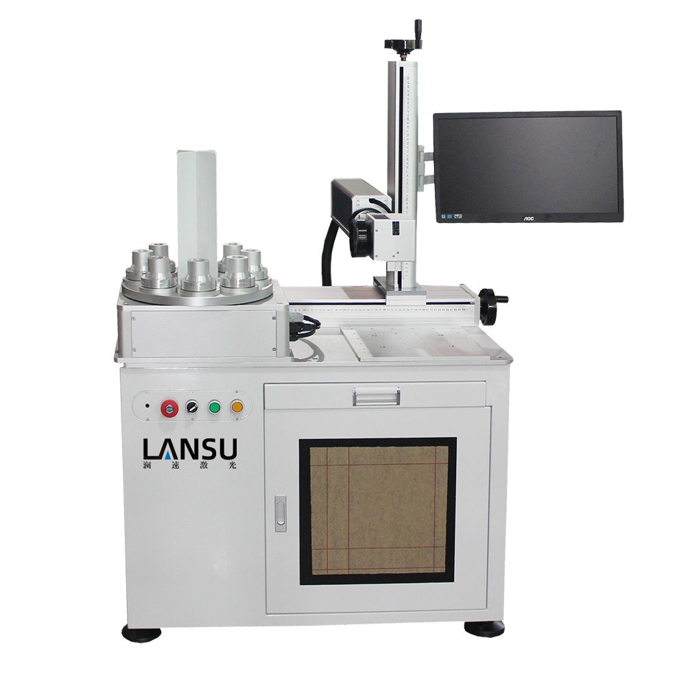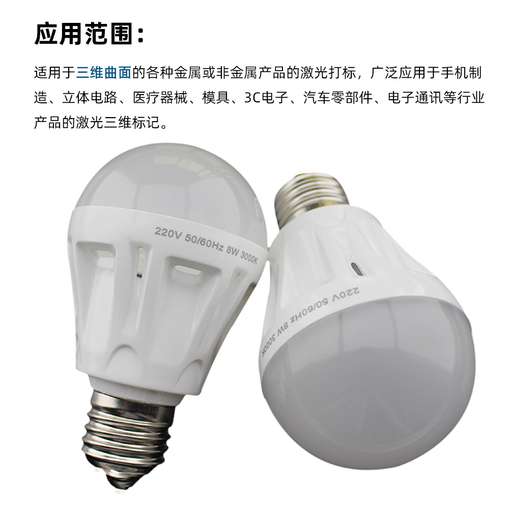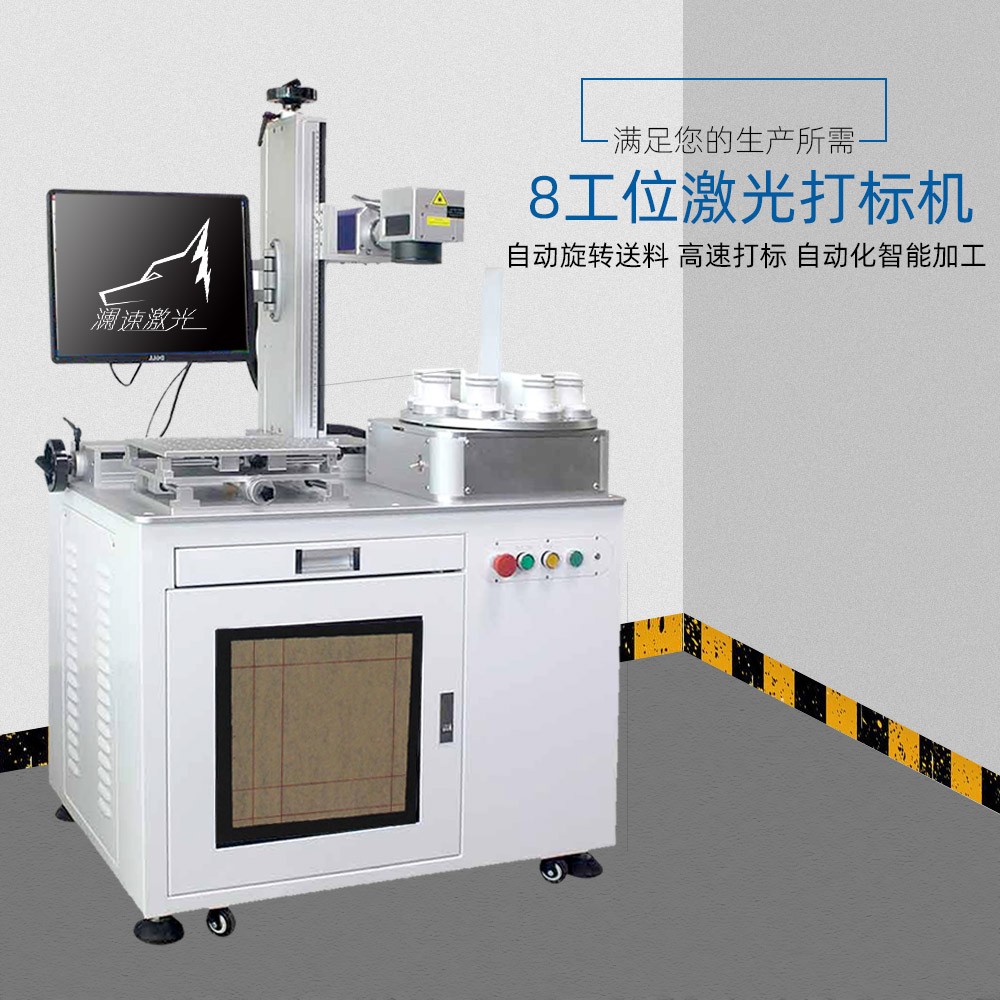 LED激光打標(biāo)機(jī)采用八工位(視產(chǎn)品具體情況可設(shè)計(jì)為6工位或4工位)3D立體旋轉(zhuǎn)轉(zhuǎn)盤設(shè)計(jì),光路X、Z軸手動(dòng)移動(dòng)可調(diào),單個(gè)工位之間獨(dú)立工作,自動(dòng)360°旋轉(zhuǎn),減少上下料時(shí)間,提高工作效率。適用于產(chǎn)量在10K/d以上的球泡燈、要求打雙面、三面或360°旋轉(zhuǎn)打標(biāo)的產(chǎn)品等,整臺(tái)機(jī)器的操作只需要普通人工進(jìn)行手動(dòng)上料一個(gè)簡(jiǎn)易環(huán)節(jié),雙工作臺(tái),平面打標(biāo),圓周打標(biāo)一機(jī)兩用,操作簡(jiǎn)單,速度快,效率高,標(biāo)刻清晰,無(wú)損耗。